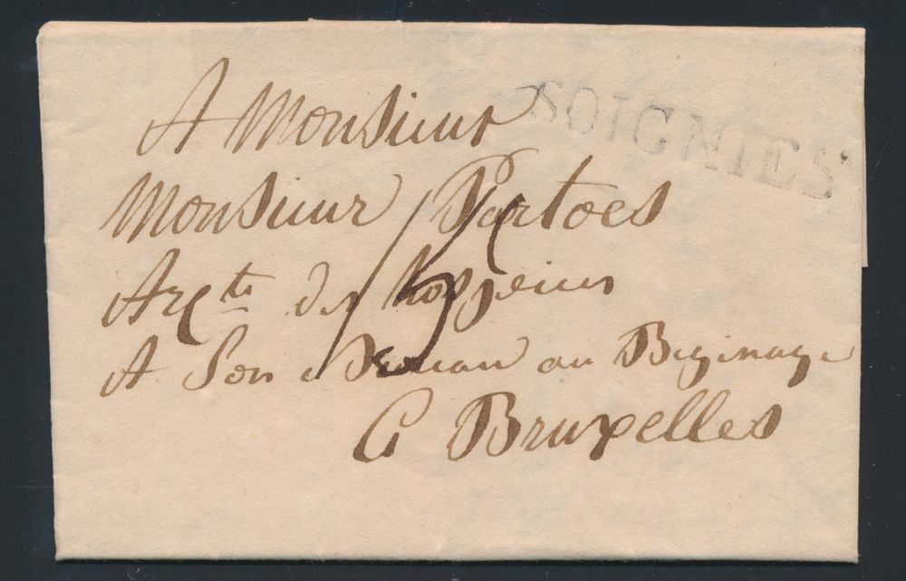 966 image1821 Forerunner with contents from Soignies (Herlant 15), dated 1 April 1821, to Brussels, charge 15 centimes, vf(Image 1) (Image 2)