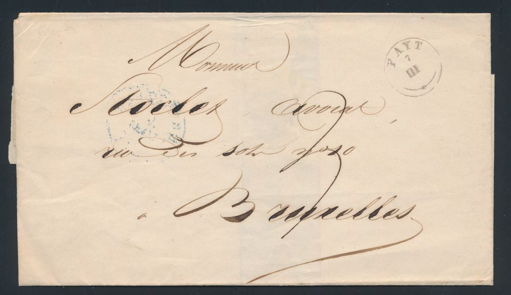 972 image1841 Forerunner without content, from Fayt, (Type 18 cancellation, Herlant 4), dated 7 March 1841, to Brussels, charge 2 decimes, vf(Image 1) (Image 2)