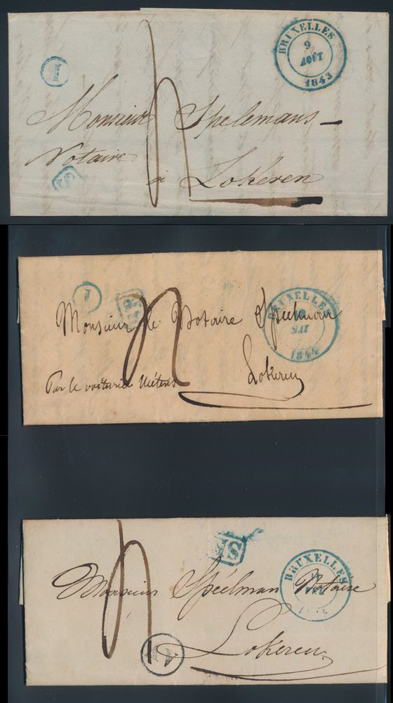 980 image3 forerunners, all with post office box and blue cancellation "SR" in frame, Bruxelles (Post Office Box I twice in blue and Post Office Box AV in black), all to Lokeren, vf(Image 1)