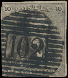 N° 1 "10c. brown", fully margined, P.102-Roulers, vf (OBP €90