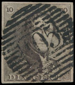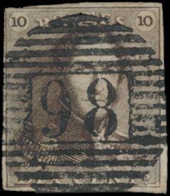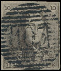 N° 1 "10c. brown", fully margined, light cancel
