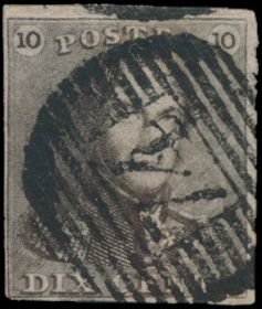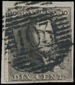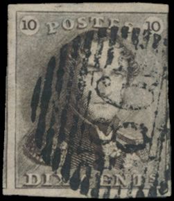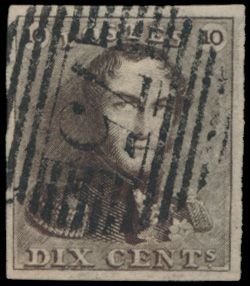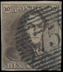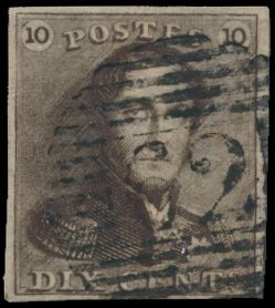 N° 1 "10c. brown", fully margined, P.75-Lokeren, vf (OBP €90
