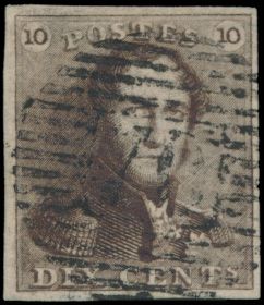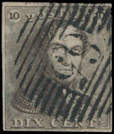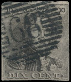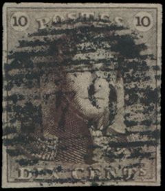 N° 1 "10c. brown", fully margined, P.74-Lierre, vf (OBP €90 +