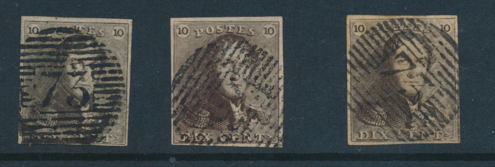 N° 1 "10c. brown" (3x) fully margined, P.73-Liège, nice