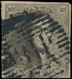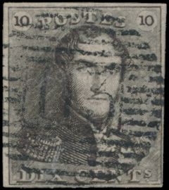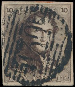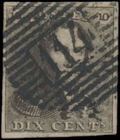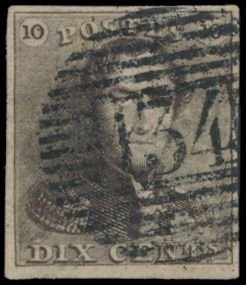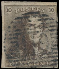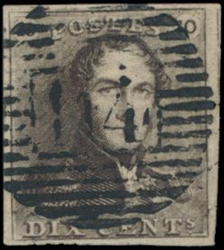 1124 0 imageN° 1 "10c. brown", fully margined, cancel P.117-Thuin, vf (OBP €90 + COBA €30)(Image 1)