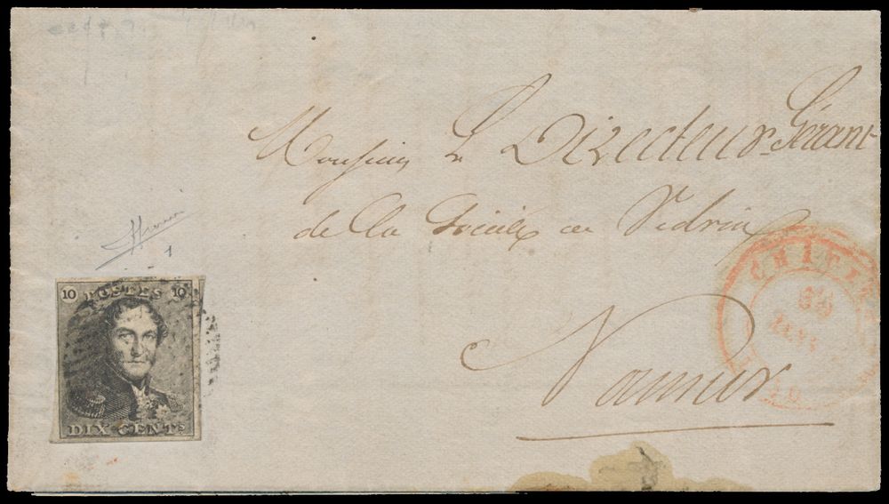 1136 image1850 N° 1 "10c. brown", fully margined on letter with contents, cancel P.26-Châtelet (illegible), dated 31 January 1850, to Namur, vf (OBP €220 + COBA €20)(Image 1) (Image 2)
