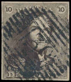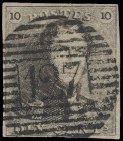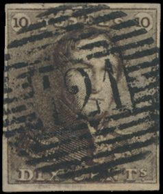 1128 0 imageN° 1 "10c. brown", fully margined, cancel P.127-Vise, vf (OBP €90 + COBA €75)(Image 1)