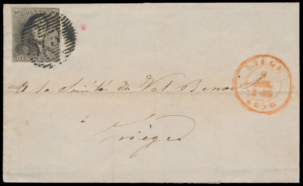 1140 image1850 N° 1 "10c. brown", fully margined, letter with contents, dated 8 July 1850, cancel P.73-Liège, to Liège, vf (OBP €220)(Image 1) (Image 2)