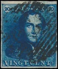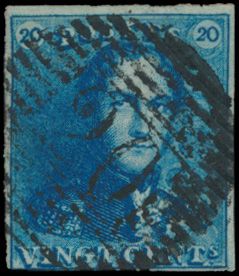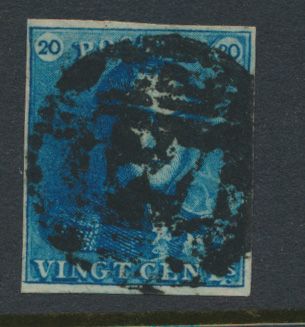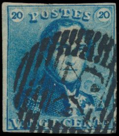 1188 0 imageN° 2A "20c. blue", fully margined, very dark shade, light cancel P.34-Dison, multiple griffes, vf (OBP €60 + COBA €75)(Image 1)