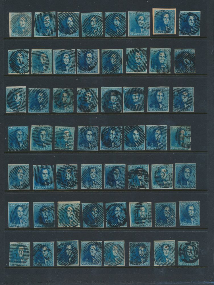 1181 0 imageN° 2/2A "20c. blue" (56x), varied condition, with some better cancellations (P50, P17, P119...), multiple neighbours, many griffes, vf/f/to be checked(Image 1)