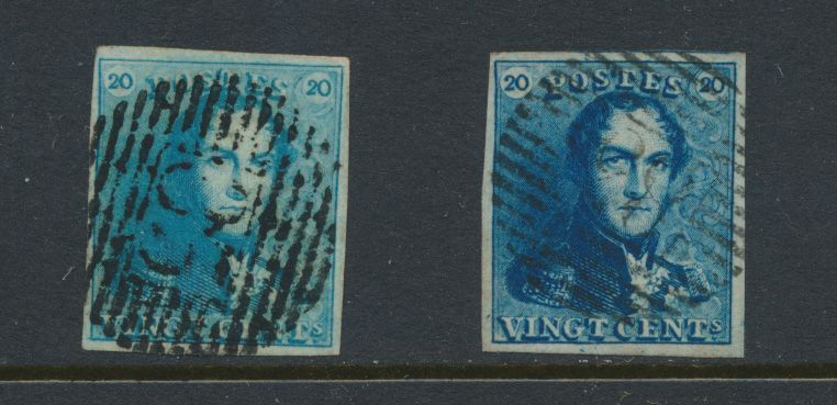 1190 0 imageN° 2A "20c. blue" (2x), fully margined, with different colour shades, both cancelled P.83-Mons, vf(Image 1)