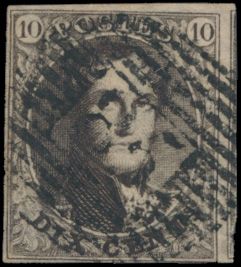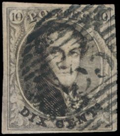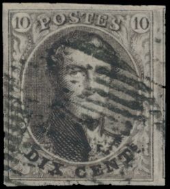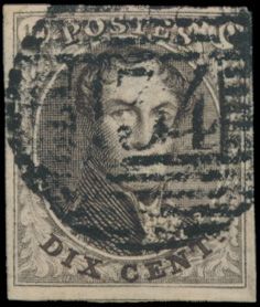 1324 0 imageN° 3 "10c. brown", fully margined, beautiful central cancel P.33-Dinant, with expert mark John Brys, vf (OBP €115)(Image 1)