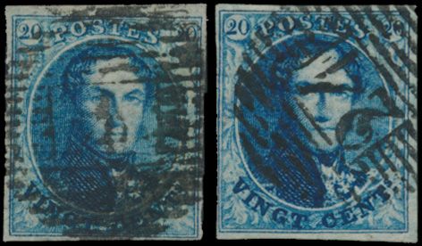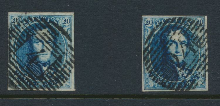 1337 0 imageN° 4 "20c. blue", thin papier, with two colour shades, light blue and blue, vf (OBP +€140)(Image 1)