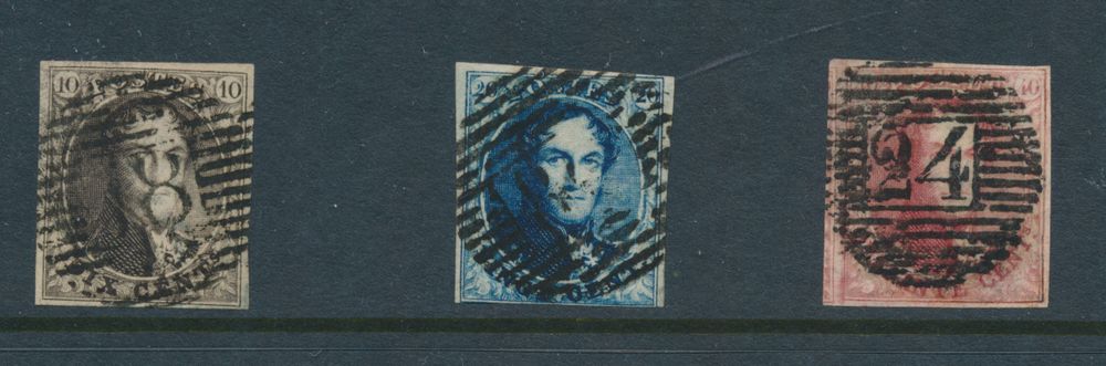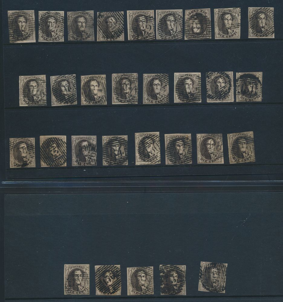 1335 0 imageN° 3 "10c. brown", fully margined, cancelled P.18-Binche, n° 4 cut at the bottom, n° 5 repaired on the right and at the bottom, vf/f(Image 1)