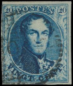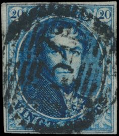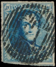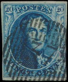 1344 0 imageN° 4 "20c. blue", fully margined with 3 wide margins, nice central cancel D.37-Mol, vf (COBA €75)(Image 1)