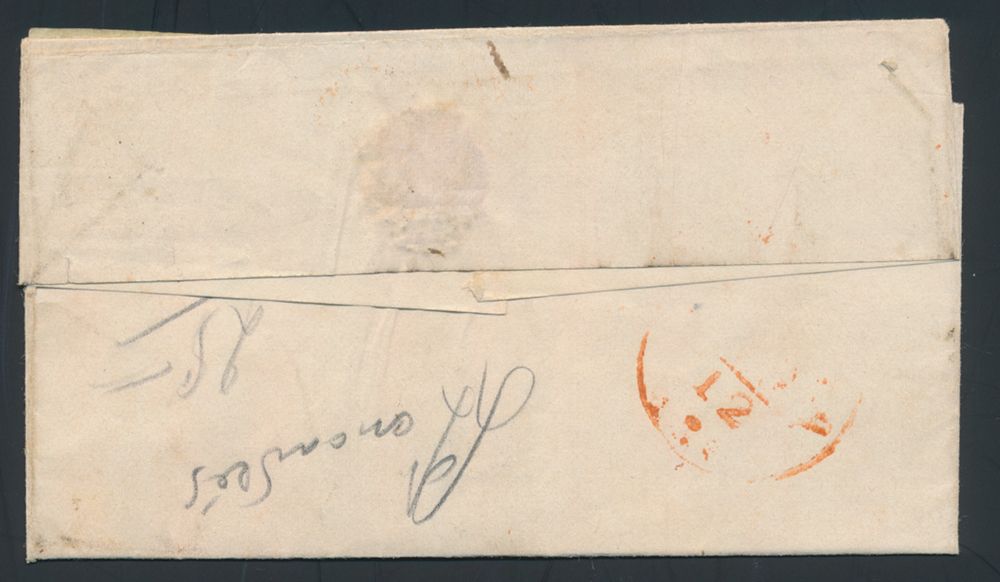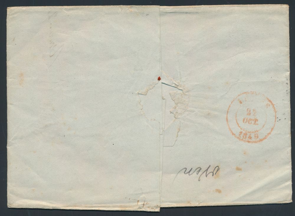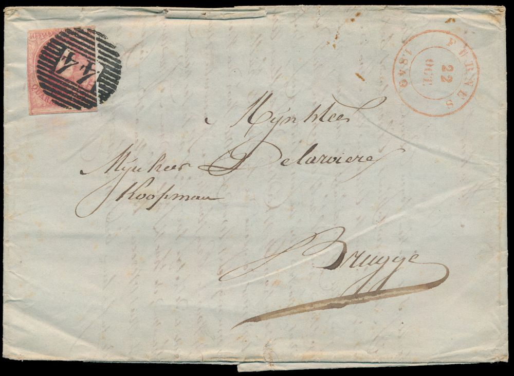 1360 image1849 N° 5 "40c. carmine pink", on letter from Furnes, with nice cancellation P.44, dated 22 October 1849 to Bruges, second weight class inland, f/to be checked (OBP €1,100 + COBA €150)(Image 1) (Image 2)