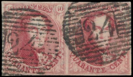 1349 0 imageN° 5 "40c. carmine pink", fully margined, with left neighbour, cancel P.4-Anvers, vf (OBP €575)(Image 1)