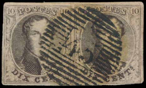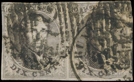 1378 0 imageN° 6 "10c. brown", fully margined pair, nice griffes on top of left stamp, with mixed cancel P.24-Bruxelles and the departure stamp of Bruxelles, vf(Image 1)