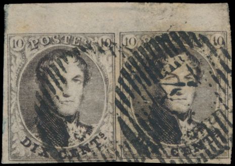 1371 0 imageN° 6 "10c. brown", in pair with irregular cancellation P.45-Gand, one cancellation on both stamps, vf(Image 1)