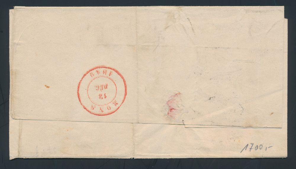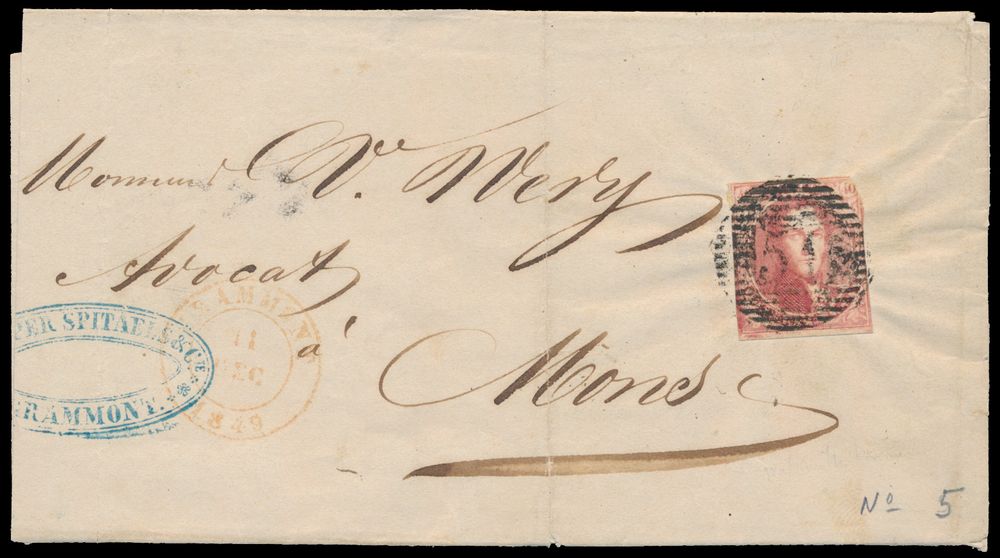 1361 image1849 N° 5, "40c. carmine pink", nice margins but missing right corner, letter without content, dated 11 December 1849, cancel P.51-Grammont, to Mons, double charge inland, rarely offered with "40c.", vf/f (OBP €1,100)(Image 1) (Image 2)