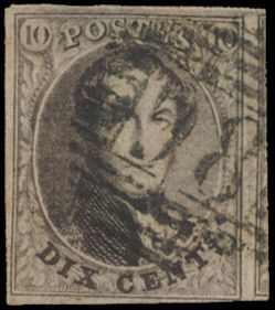1454 0 imageN° 10 "10c. brown", fully margined, with cancel P.75-Lokeren, vf(Image 1)