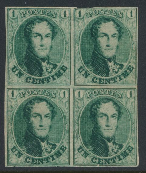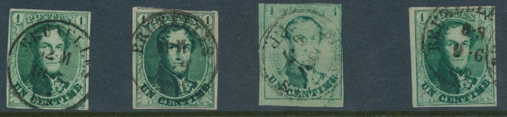 1443 0 imageN° 9 "1c. green", 4 copies, all fully margined (pale green is touched), 4 different shades, vf/f (OBP +€600)(Image 1)