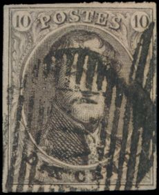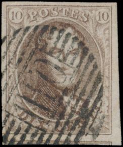 1460 0 imageN° 10 "10c. brown", fully margined with horizontal extension of the right corner, multiple griffes, cancel "O.III", vf (COBA €30)(Image 1)