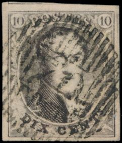 1494 0 imageN° 6 "10c. brown", plate II, position 11, letters in watermark "TE" of Postes, cancel D.70-Braine L'Alleud (Ex. Scheerlinck), see scan, vf(Image 1)