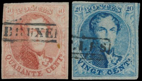 1486 0 imageN° 11/12, both stamps fully margined, with Brussels cancel griffes, across both stamps, name stamp is BEAUTIFULLY CONNECTED across the two stamps, vf(Image 1)