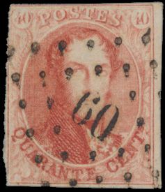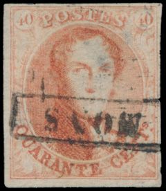 1488 0 imageN° 12 "40c. vermilion", 3 margins, late cancel Pt.60-Bruxelles, vf/f(Image 1)