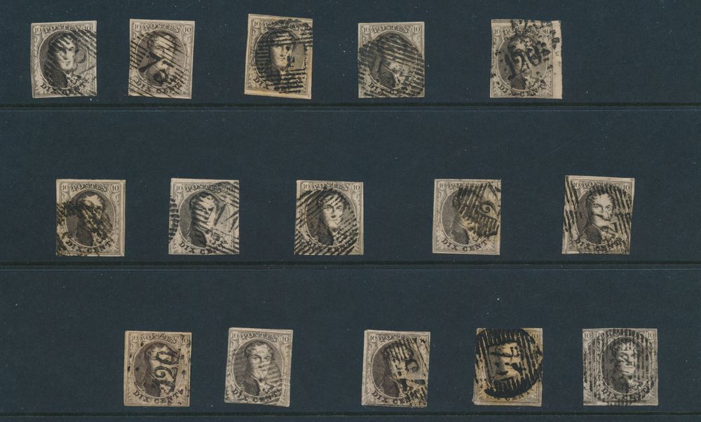 1493 0 imageN° 6 "10c. brown", plate II, 65 stamps, all plate, nicely edged, margins, nuances, varieties, see scan, vf(Image 1)