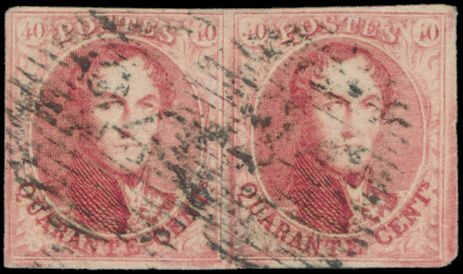 1508 0 imageN° 8 "40c. carmine", in pair, nicely fully margined with nice margins, cancel P.24-Bruxelles, position 173-174, vf (OBP++€425)(Image 1) (Image 2)