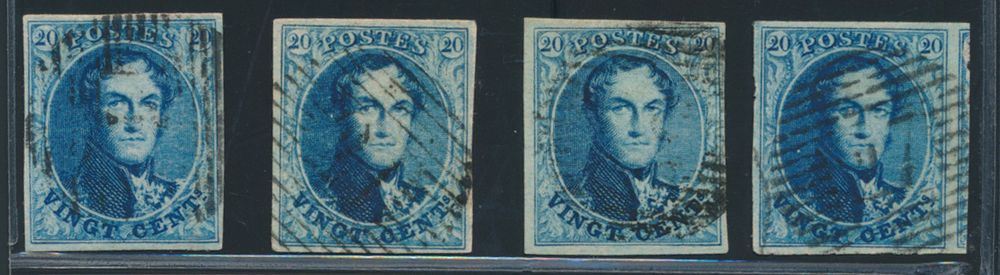 1504 0 imageN° 7 "20c. blue" (4x), all fully margined, plate IV, for plater, vf(Image 1)