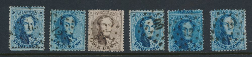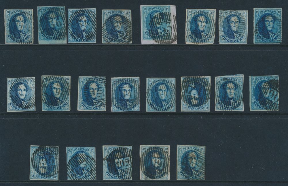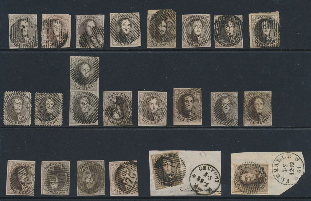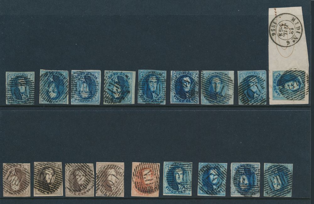 1578 0 imageLot of imperforate medallions, "10c." (4x), "20c." (13x) and "40c." (1x), almost all fully margined, with ambulantory cancel such as "O.III", "E.III", etc., see scan, vf/f(Image 1)