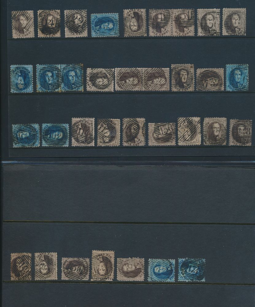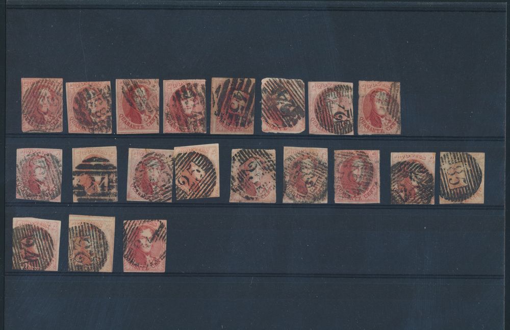 1570 0 imageN° 13/16, multiple perfs, decent perf, cancellations, nice griffes, nice accumulation (39 stamps in total), vf/f(Image 1) (Image 2) (Image 3) (Image 4) (Image 5)