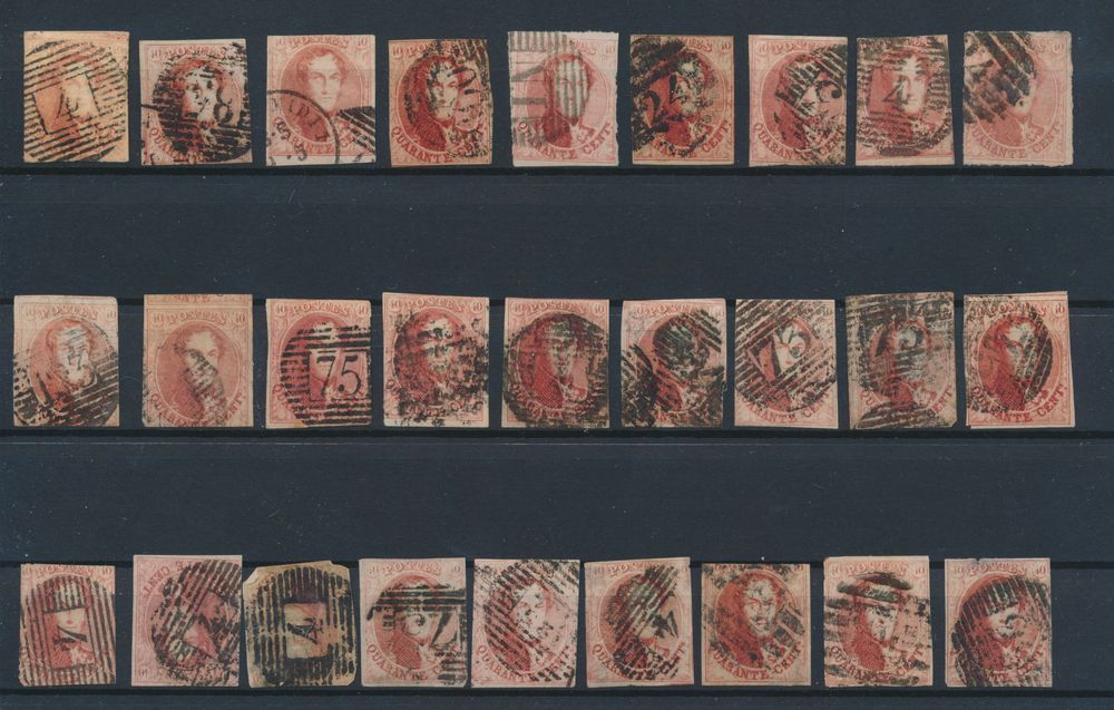 1580 0 imageCollection, including "10c." (34x), "20c." (94x) and "40c." (20x), nice griffes present, for plater, vf/f/to be checked(Image 1) (Image 2) (Image 3) (Image 4)