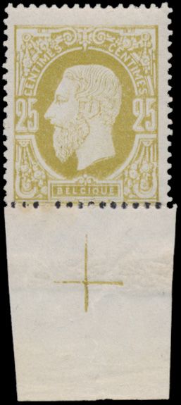 1635 nh imageN° 32A "25c. olive" with lower sheet margin and cross mark, FNIP photo certificate dated 07.11.2012, vf (OBP +€570)(Image 1) (Image 2)