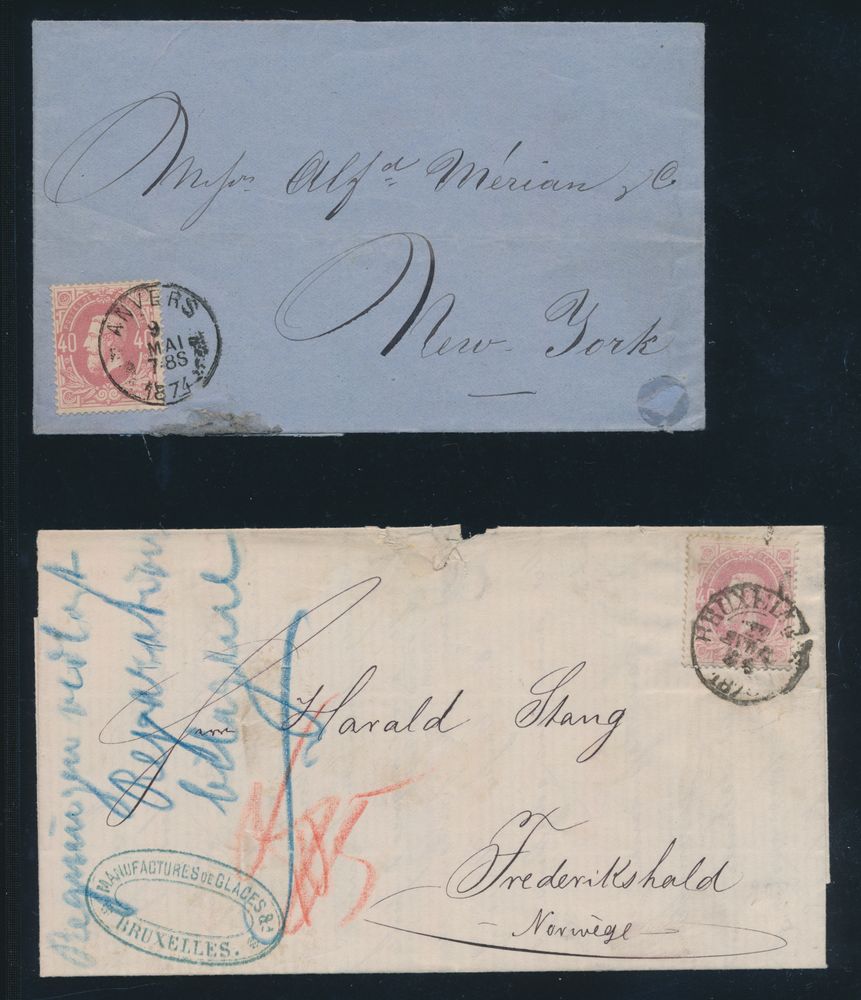 1652 image1874/1882, 4 letters with foreign destinations, including New York, Norway, Paris (2x), n° 32, 34 (2x), 35, vf/f(Image 1) (Image 2)