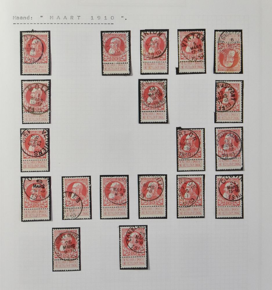 1715 0 imageFrom 1907 to Aug 1910 collection 'Dagkalender' on N° 74 "10c. carmine", with several hundred stamps, nice starter collection to add to, vf/f(Image 1) (Image 2) (Image 3)
