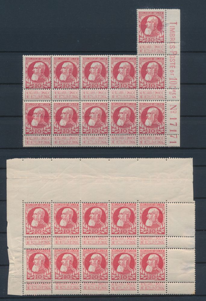 1710 nh imageN° 74 '10c. carmine' in 2 fields of 10 and 11, with margin inscription, vf/f/to be checked(Image 1)