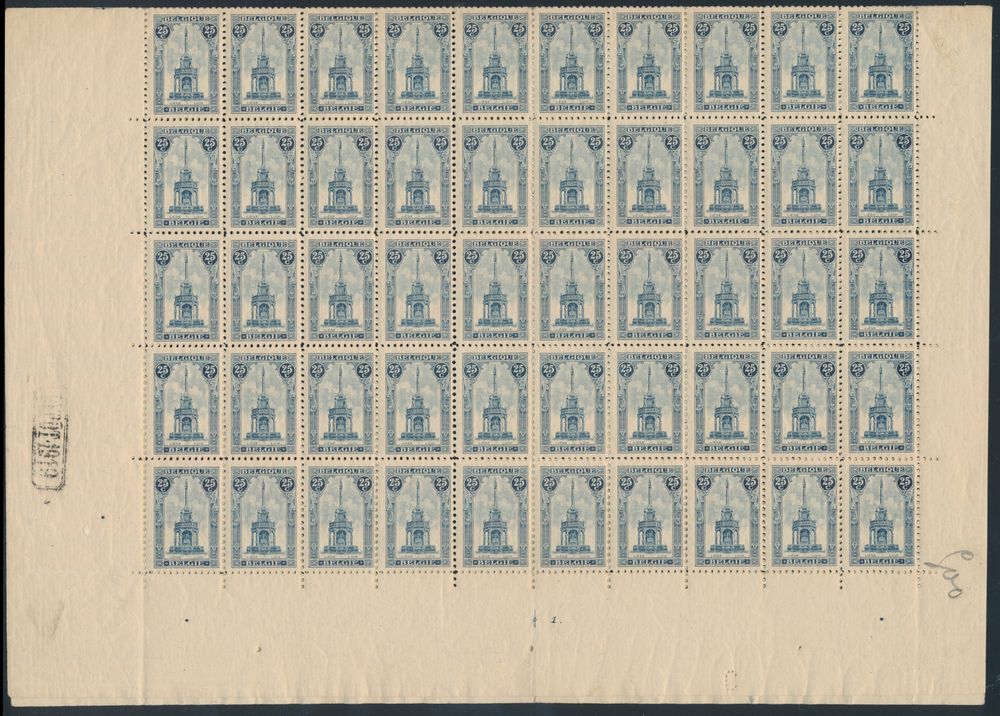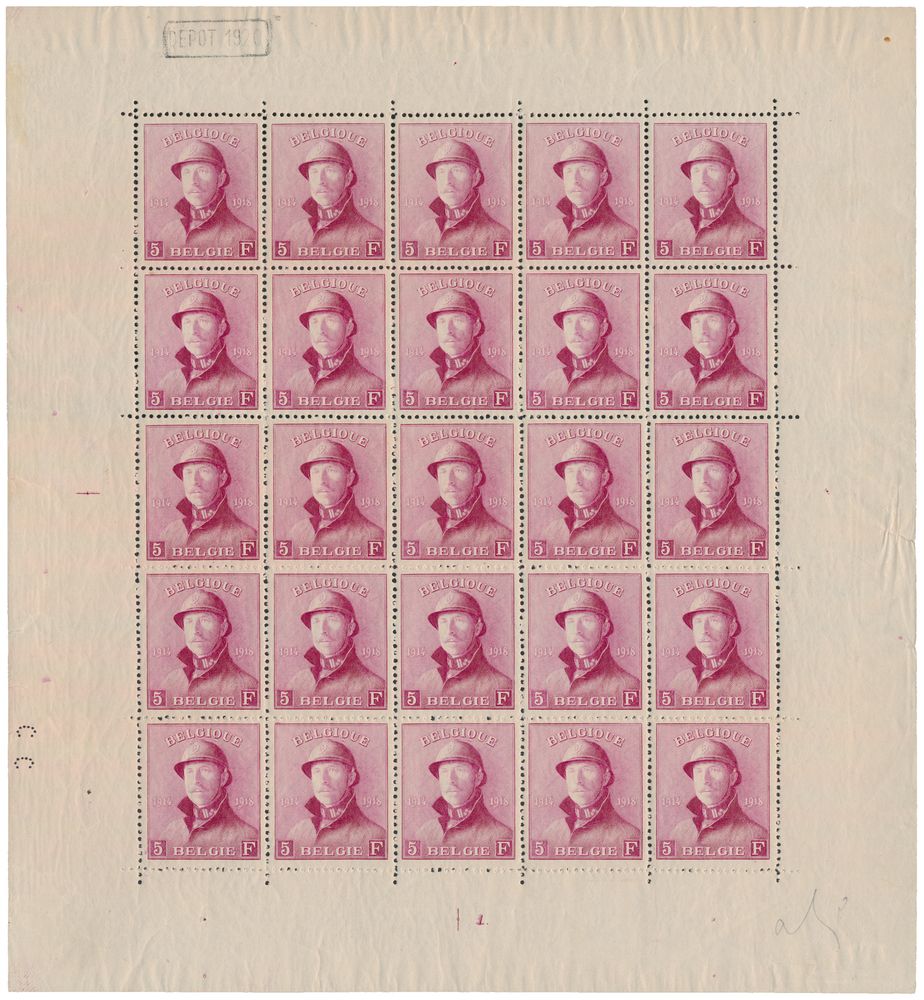 1812 nh/og imageF 177 "5fr. dark purple-red" (full sheet of 25), plate number 1, "Depot 1920", stamps **, sheet margin *, beautiful, vf (OBP €12,000)(Image 1)