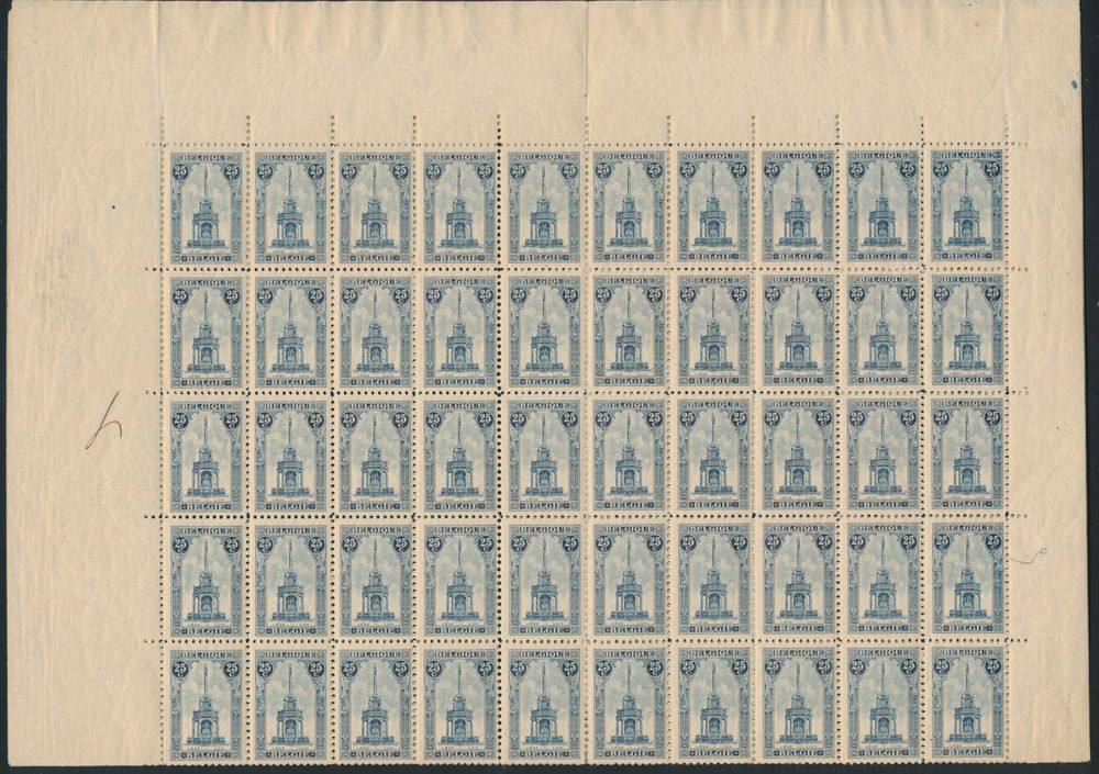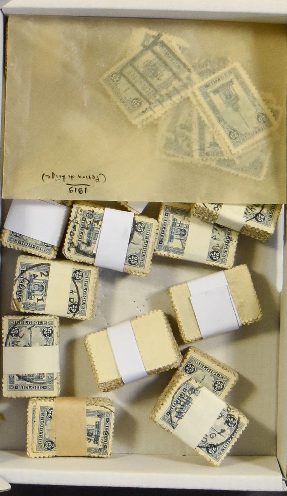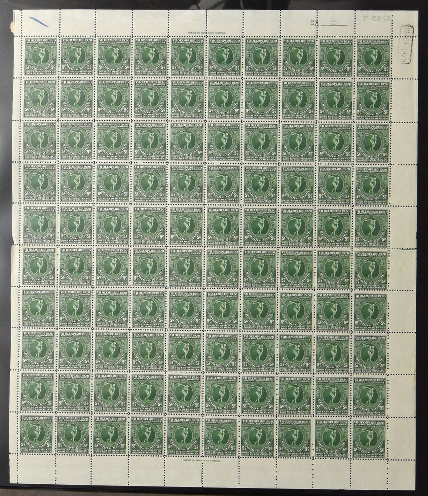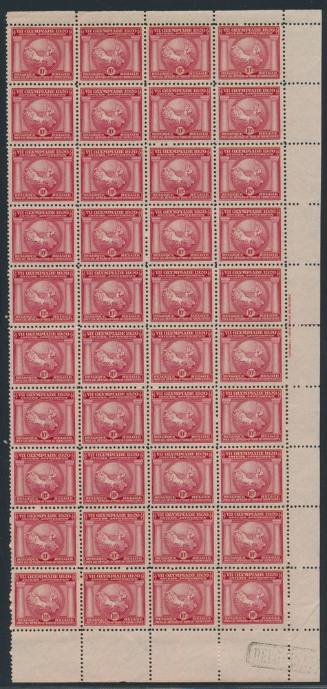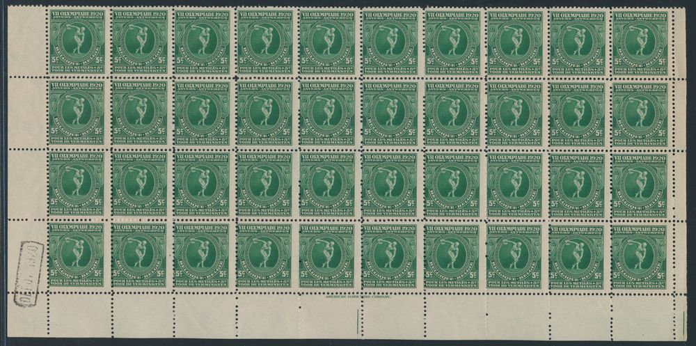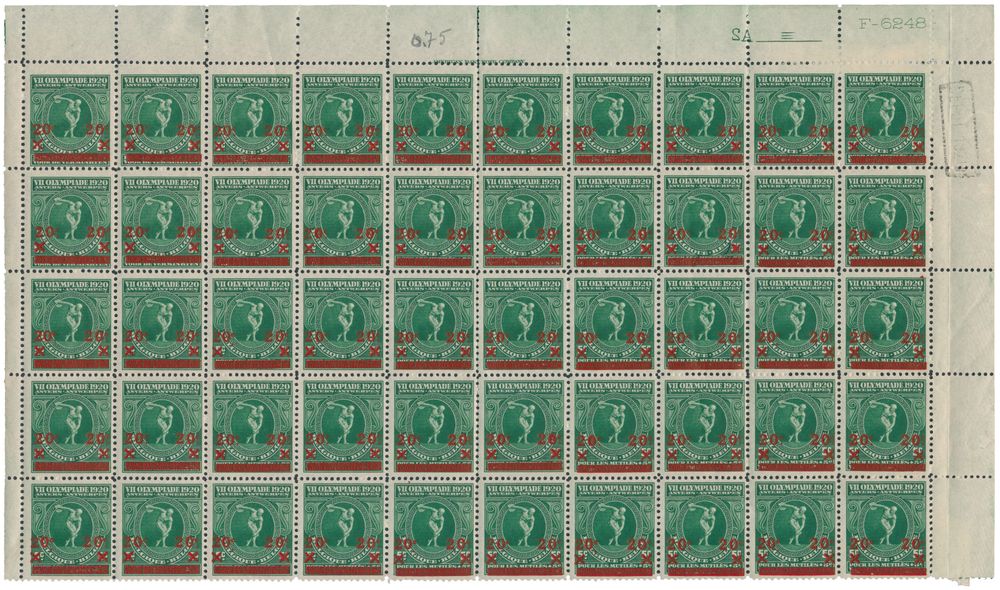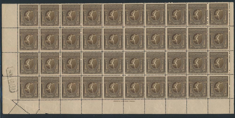 1817 nh imageN° 179 "Discus thrower, sculpture", in sheet of 100, depot 1920, N° 180 "Quadriga", in sheet of 100, "deposit 1920" and N° 181 "Marathon runner", in sheet of 100 (torn into two parts of 50 items), "deposit 1920", vf (OBP £2,200)(Image 1)