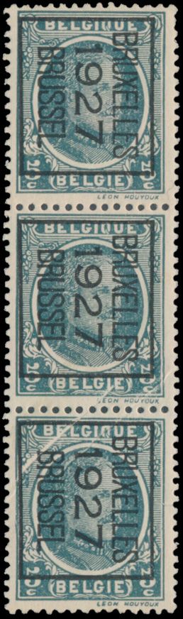 1820 nh imageN° 193 "5c. grey", with pre-stamped "Bruxelles 1927 Brussel" in black frame, in strip of 3, with beautiful accordion fold over the second and third stamps, vf(Image 1)
