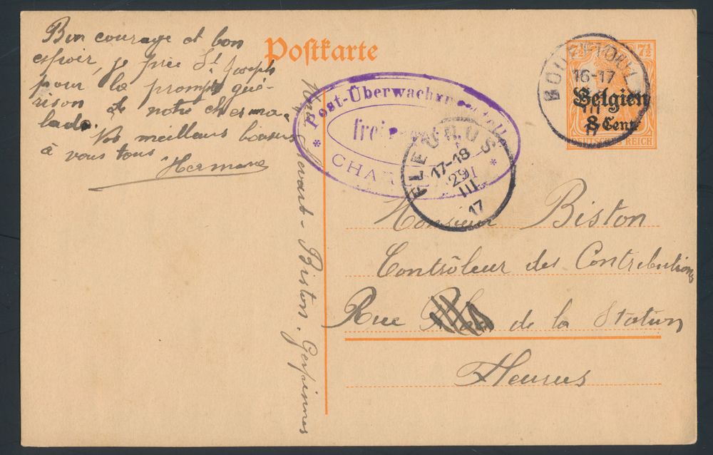 1803 imageBelgian occupation in Germany, accumulation of 22 cards with PMB/BLP cancellations, including some franked, vf/f/to be checked(Image 1) (Image 2) (Image 3)