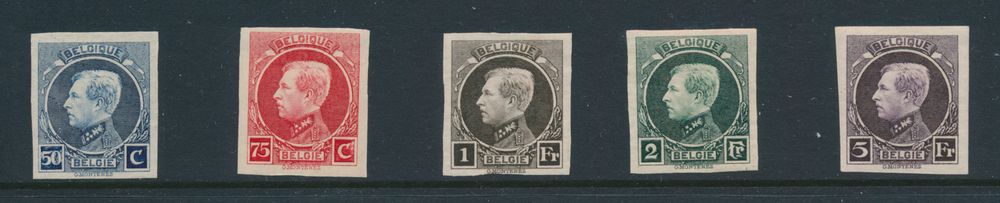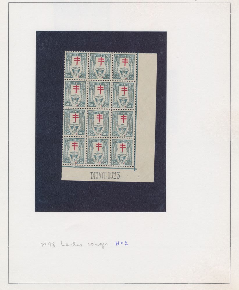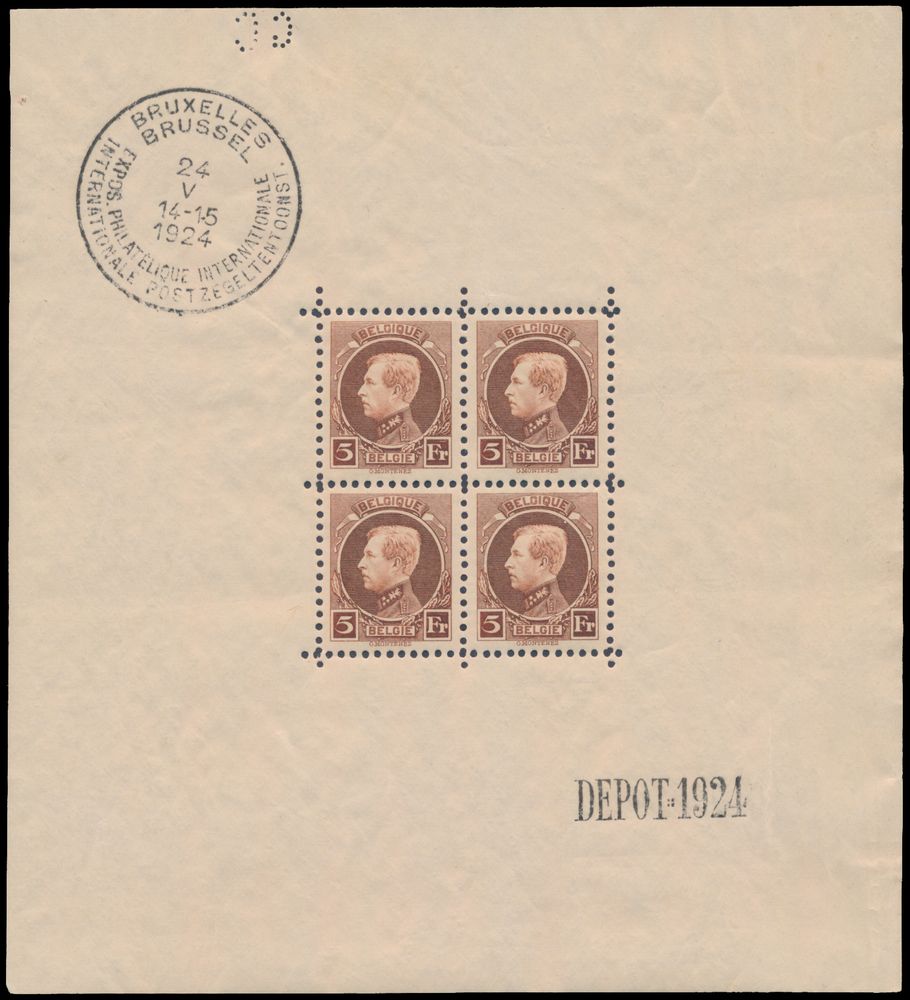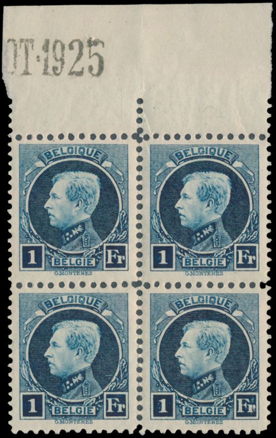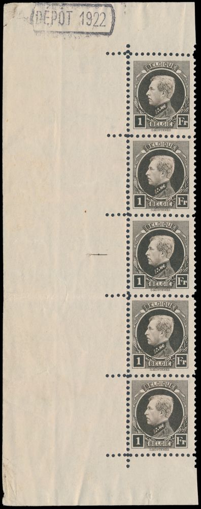 1825 nh imageN° 214B "1fr. black-brown", vertical strip of 5 stamps cut from the sheet, with a complete sheet margin next to the stamps, "depot 1922" in black frame, vf (OBP ++£375)(Image 1)