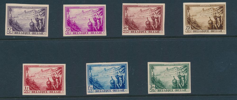 1875 imageN° 377/83 "Complete set", imperforate, 3 stamps without gum *, 4 stamps with gum *, vf (OBP €1,700)(Image 1) (Image 2)