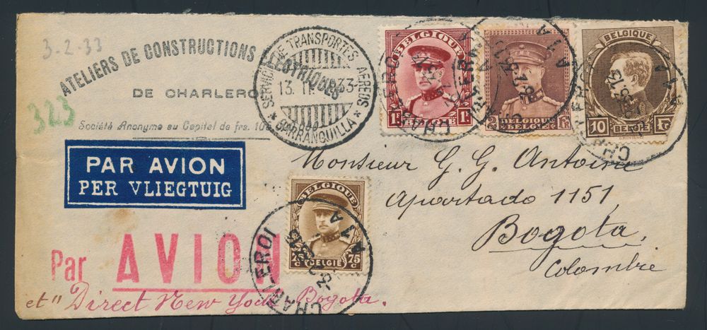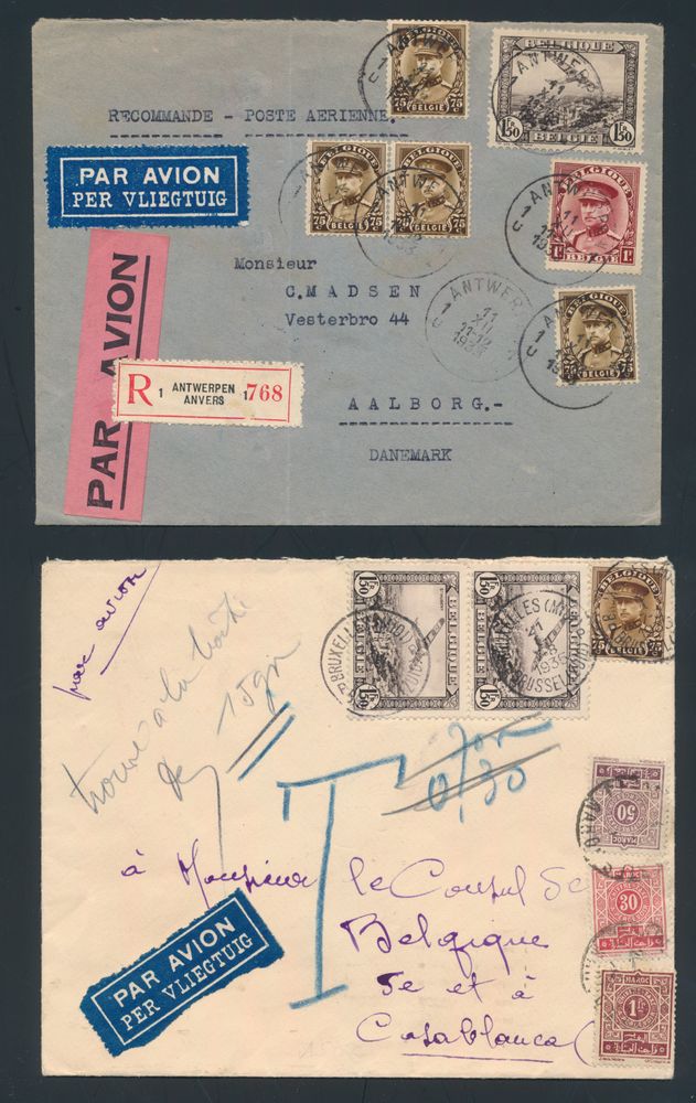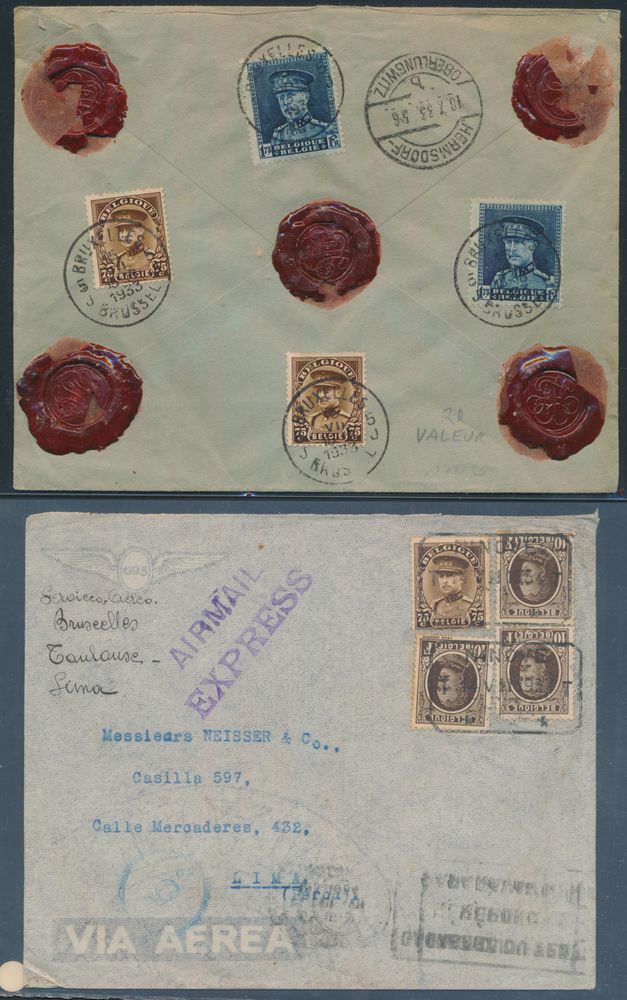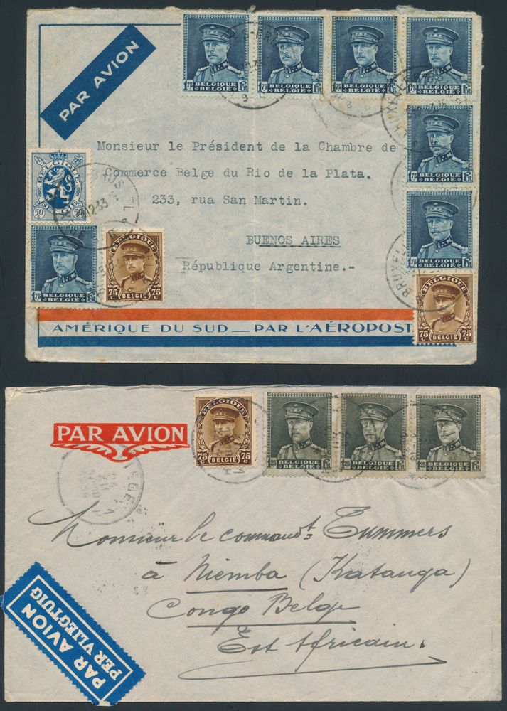 1864 imageNo. 341 Small collection of 7 letters, all with N° 341, together with other stamps, air mail, insured letter, foreign destinations such as Aalborg (Denmark), Bogota (Colombia), Buenos Aires (Argentina), Congo Belge, Lima (Peru), Casablanca (Morocco) and Germany, very nice accumulation of foreign destinations, vf/f/to be checked(Image 1) (Image 2) (Image 3) (Image 4)