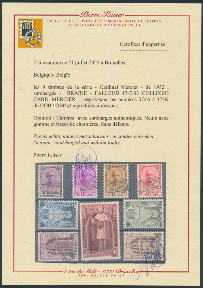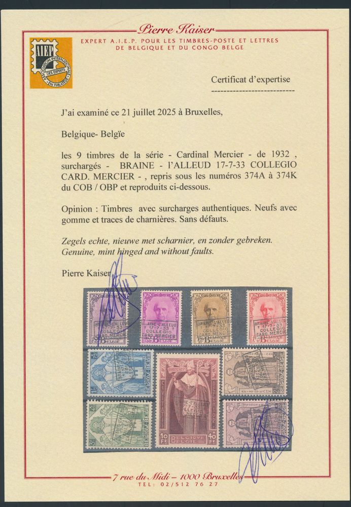 1869 og imageN° 374 A/K "Braine L'Alleud" with Kaiser photo certificate, vf (OBP €2,700)(Image 1) (Image 2) (Image 3)