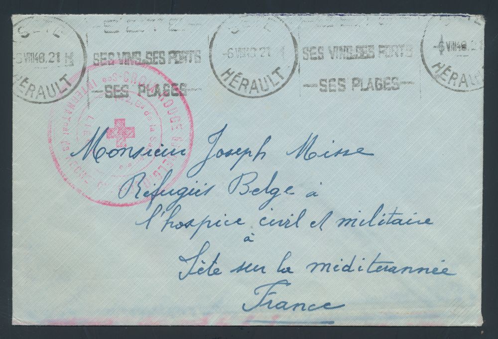 1894 image1940 "Red Cross", cover sent from Ougrée, with red cancellation "Croix-Rouge de Belgique Liège" to Belgian refugee in a military hospital at Sète (France), vf(Image 1) (Image 2)