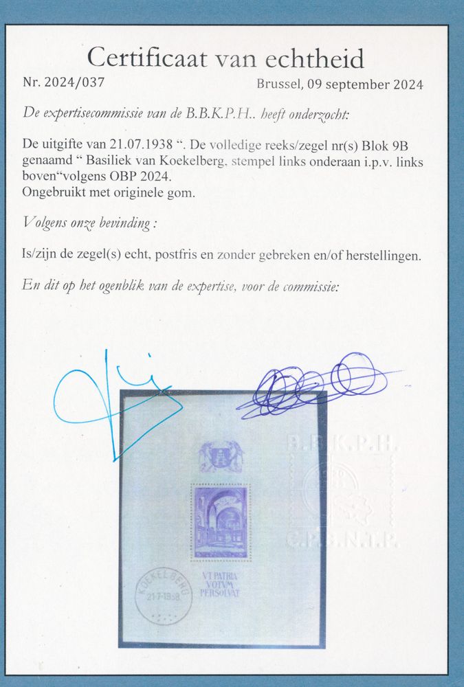 1891 nh imageBL 9A "Koekelberg" without cancellation in margin (with insignificant grey line on gum), vf (OBP €1,300)(Image 1)